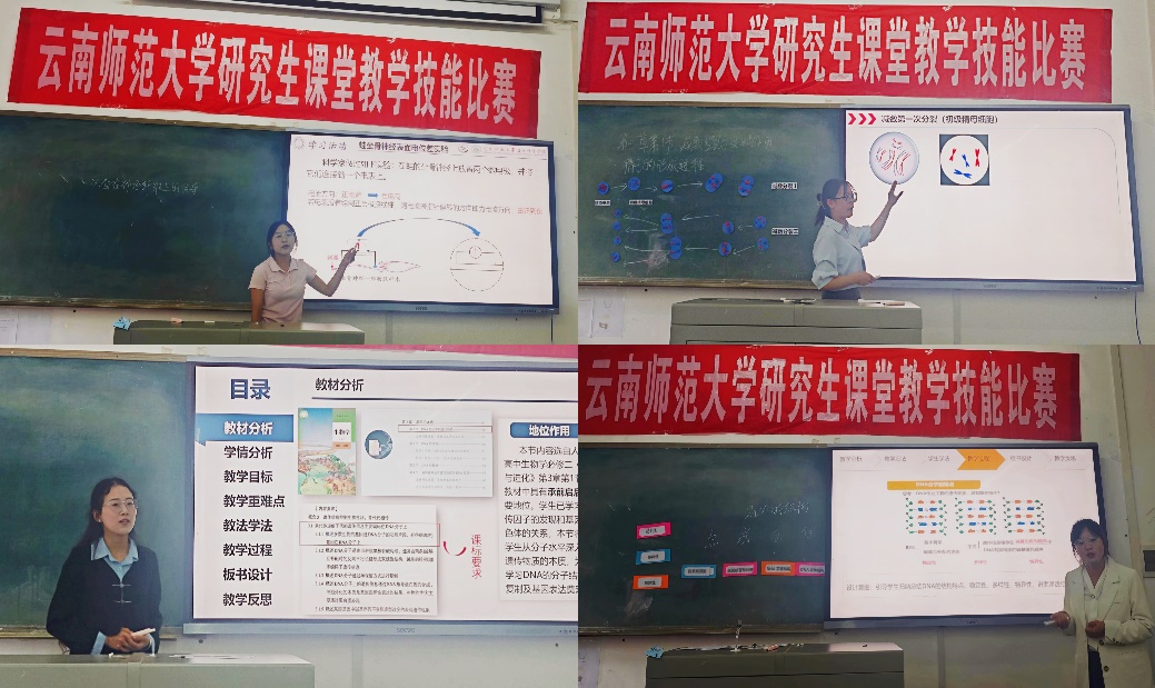 9月25日,学院举行第十三届研究生课堂教学技能比赛,本次比赛覆盖我院2023级、2024级在读全日制研究生及2025级(4+2)教育硕士34名,涉及学科教学(生物)、植物学、动物学、生物化学与分子生物专业研究生参赛。比赛围绕“教学设计、说课及现场讲课”三大核心环节开展,邀请了昆明市第三中教师白岩青和我院8名教师担任评委。
