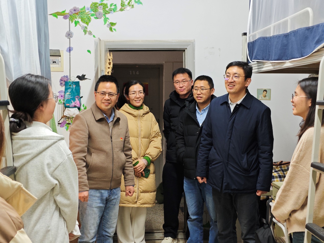 近日,副校长徐锐深入学生宿舍,开展走访慰问活动,与学生面对面交流,在寒冬夜晚送去温暖与关怀。学院班子成员、教师代表、辅导员、班主任陪同走访。