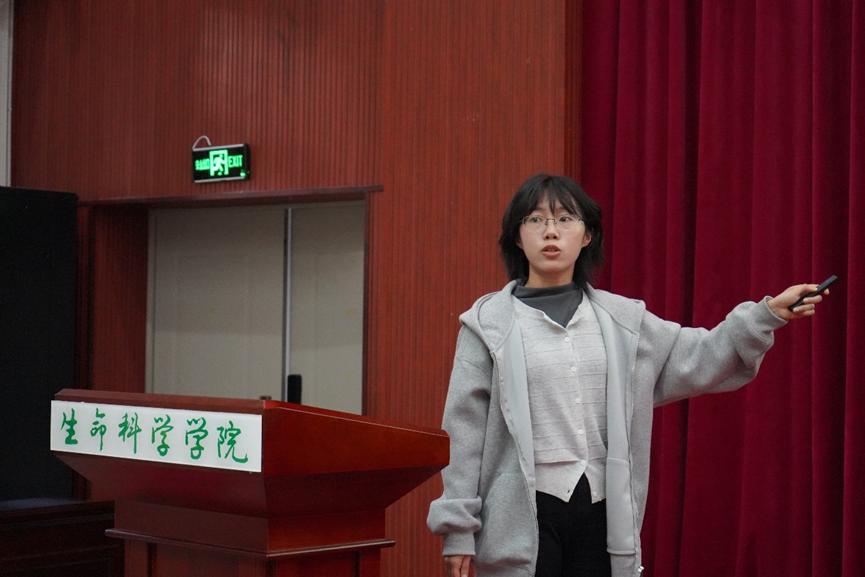 11月7日,第十届全国大学生生命科学竞赛国赛一等奖团队负责人杨珊同学,围绕“水稻多酚氧化酶OsPPO1调控稻米品质的分子机制研究”项目展开深入解读,杨珊详细介绍了竞赛准备、网评、答辩全流程,强调严谨论文撰写的关键作用,鼓励大家通过竞赛提升专业能力与团队协作素养。