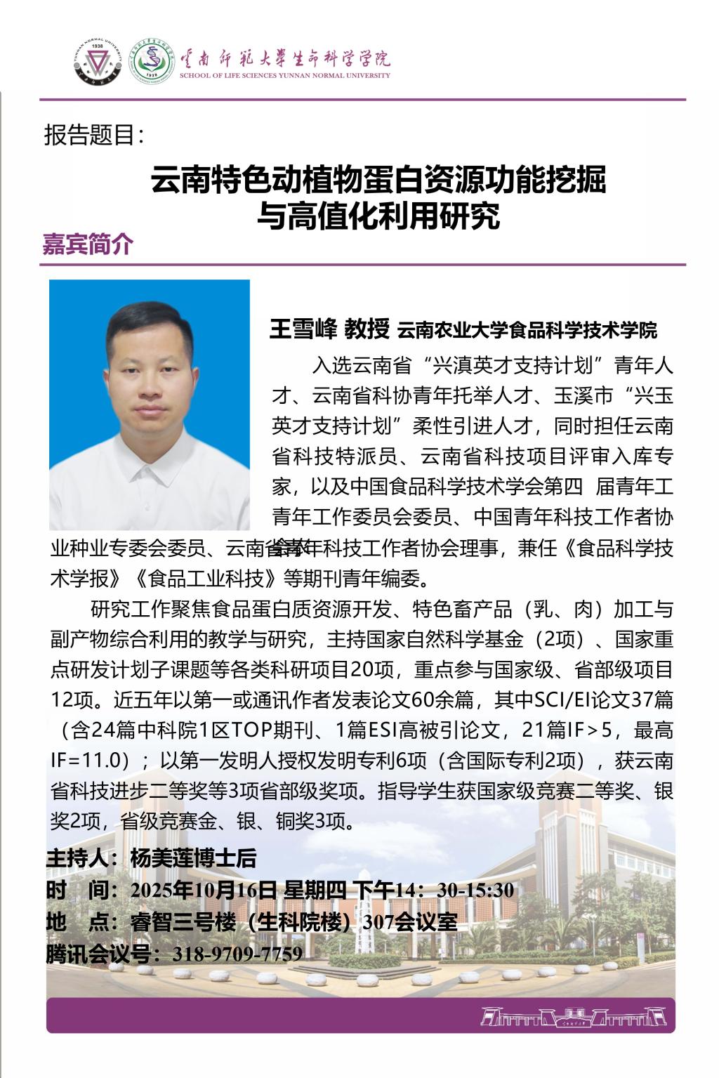 报告人:王雪峰 教授 云南农业大学食品科学技术学院