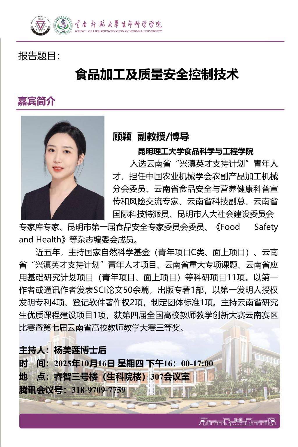 报告人:顾颖 副教授/博导 昆明理工大学食品科学与工程学院